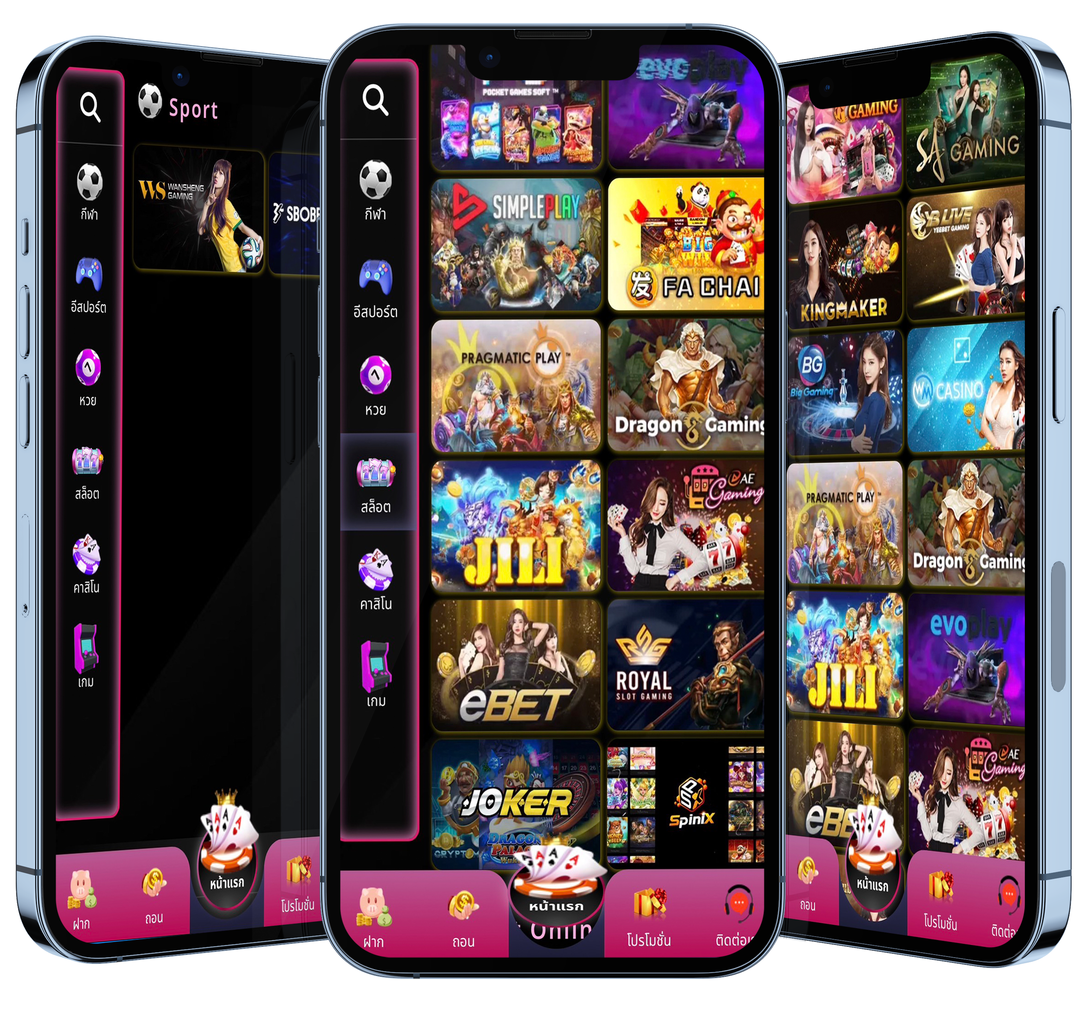 - Evolution Gaming, eBET, และ BG Casino (Big Gaming) คือ 3 ค่ายคาสิโนระดับโลก ที่ได้รับการยอมรับเรื่องคุณภาพการให้บริการ คาสิโนสดออนไลน์ ระบบทันสมัย เสถียร มีเกมเดิมพันยอดฮิตมากมายให้เลือกเล่น พร้อมรองรับการเดิมพันผ่านมือถือ 100% ไม่ว่าจะเป็น บาคาร่า, รูเล็ต หรือเกมโชว์สดสไตล์ยุโรป