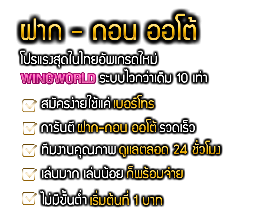 💸 ระบบฝาก-ถอนออโต้ Wingworld ที่เร็วที่สุดในไทย
