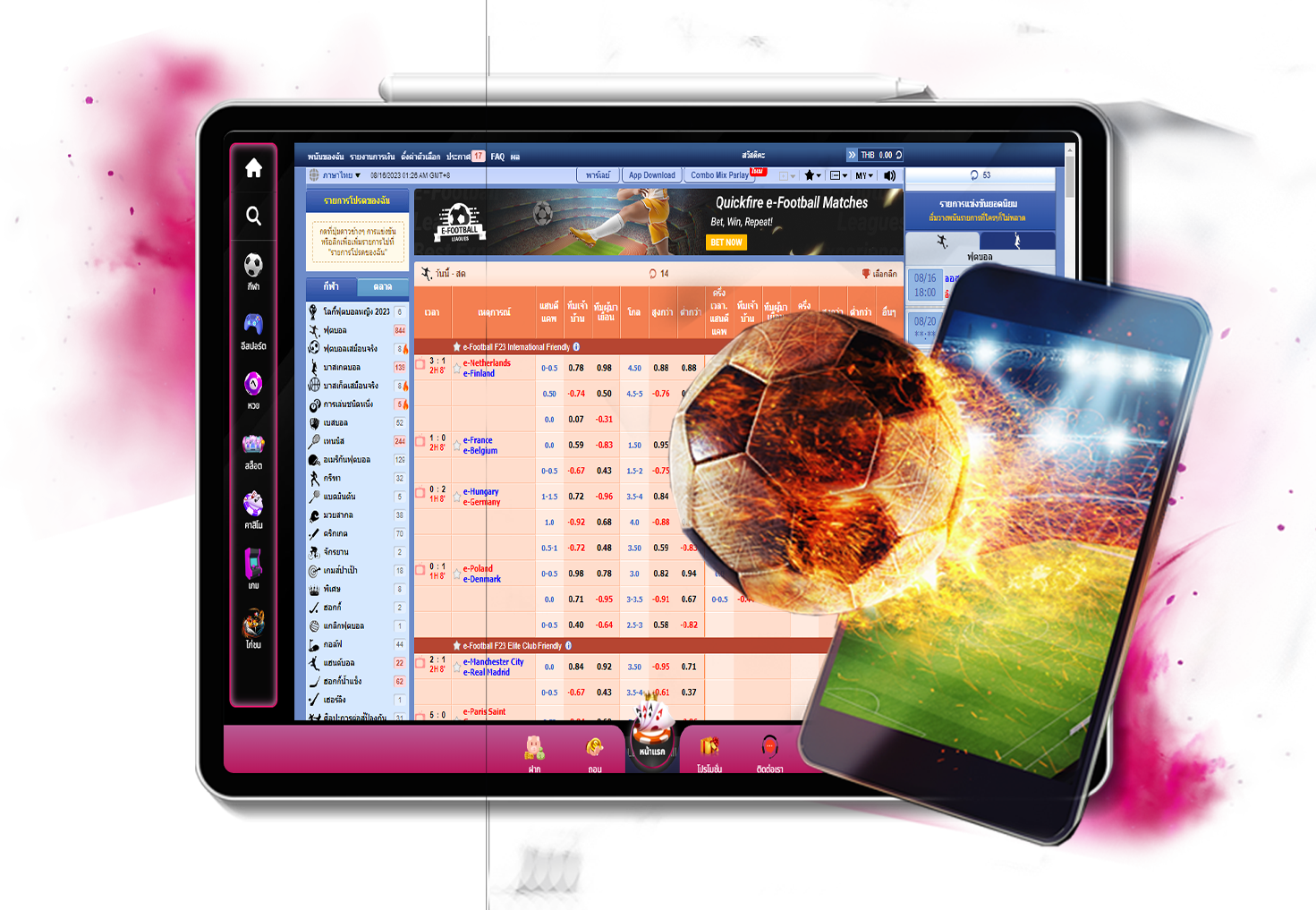 - แทงได้ทั้ง บอลเต็ง, บอลชุด, บอลสเต็ป, และ บอลสด